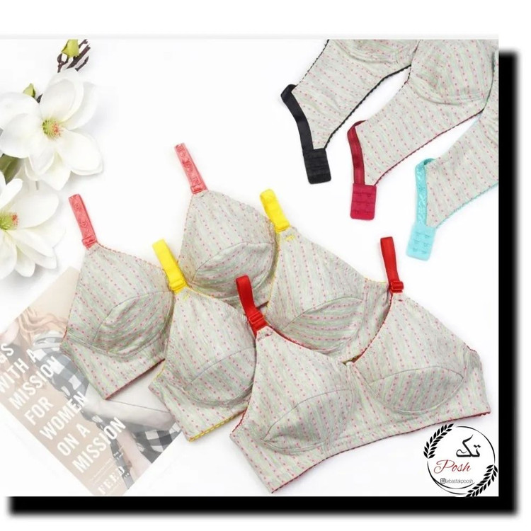 سوتین نخی خالخالی/رنگ بند زرد/سایز۷۰