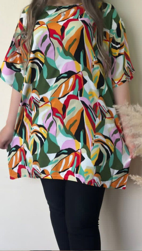 پیراهن نخی ساحلی/فوق العاده خنک وسبک/عرض لباس65cm/قد جلوی لباس75cm/قدپشت لباس77cm/قدآستین23cm/مناسب سایز38تا48//طرح آبرنگی