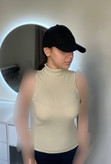 تاپ یقه اسکی/ جنس:فانریپ پنبه (درجه ۱)/پارچه دارای کشسانی میباشد/مناسب سایز ۳۶ تا ۴۲/قدتاپ ۵۵ سانت /دور سینه در حالت معمولی ۶۵/ رنگ کرم