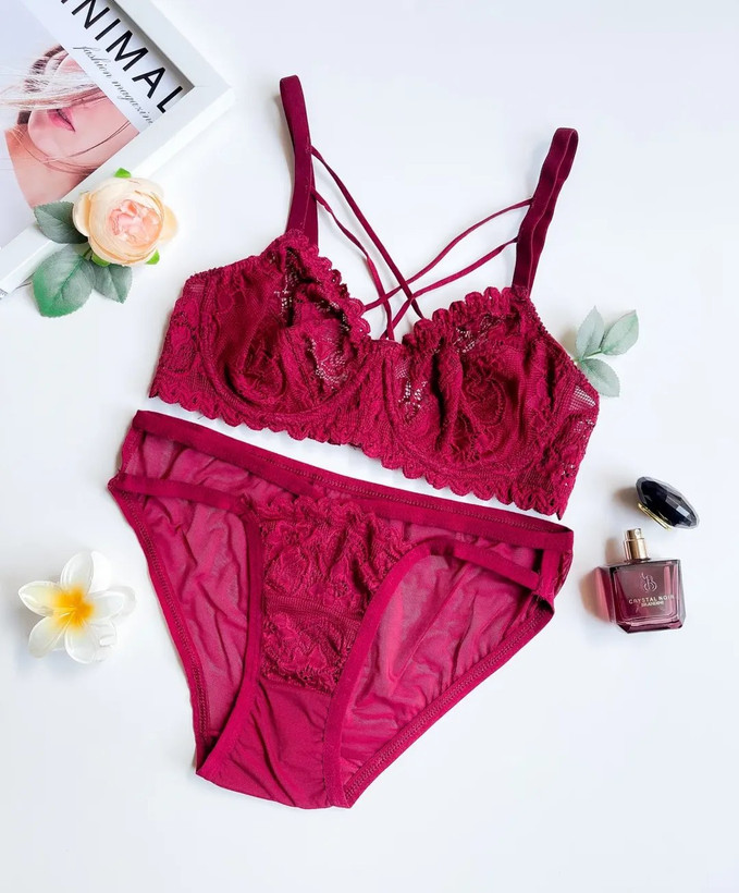 ست تمام دانتل چهار بند با طراحی فانتزی و رنگهای وسوسهانگیز (سرمهای، زرشکی و کرم) انتخابیه که زیبایی و اعتمادبهنفستو چندبرابر میکنه 💞