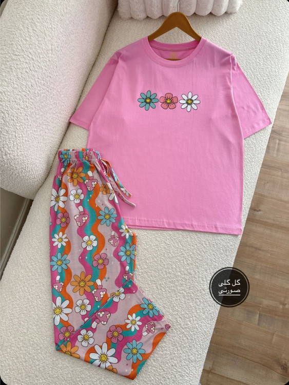 ست تیشرت آستین سهربع و شلوار عروسکی سایز بزرگ